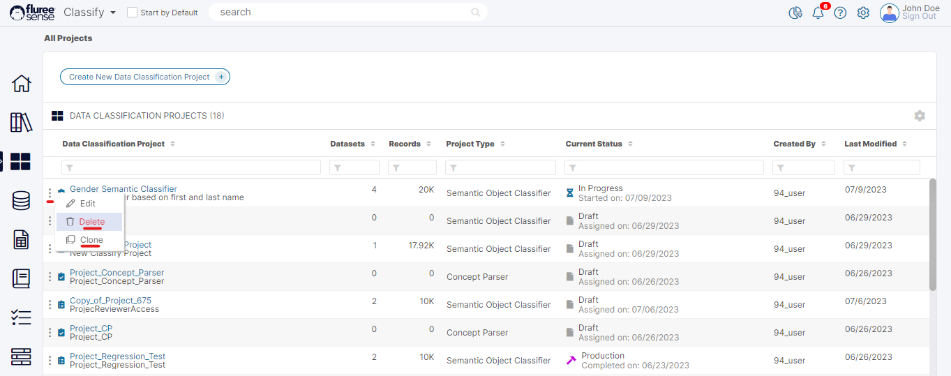 Cloning and Deleting a Classification Project