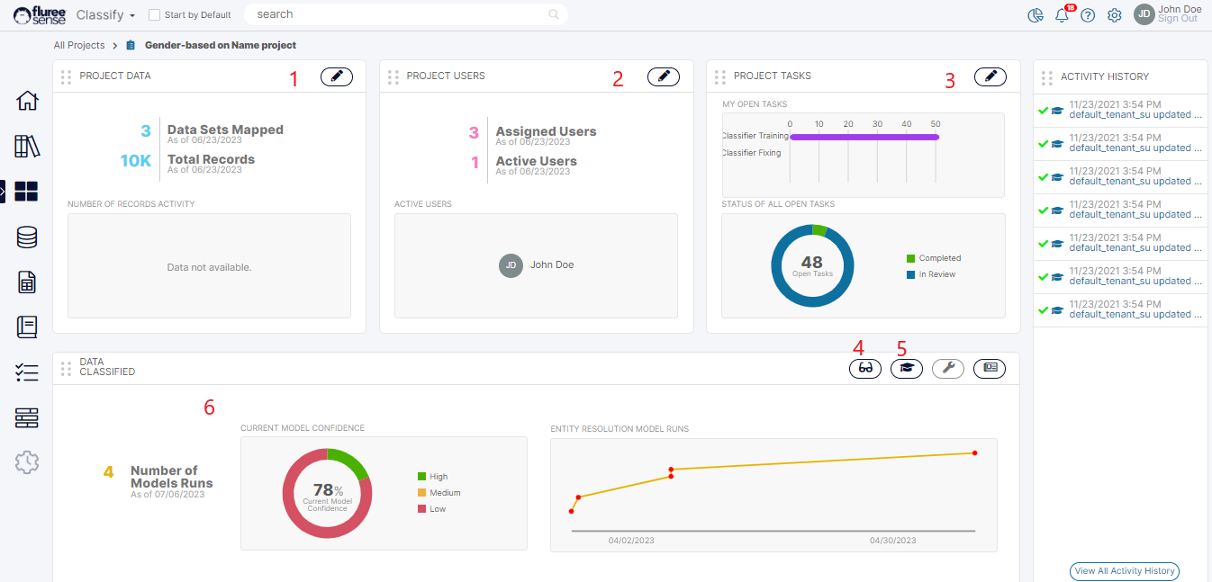 Classification Summary: This area shows the summary of results, including the current and past model confidence.