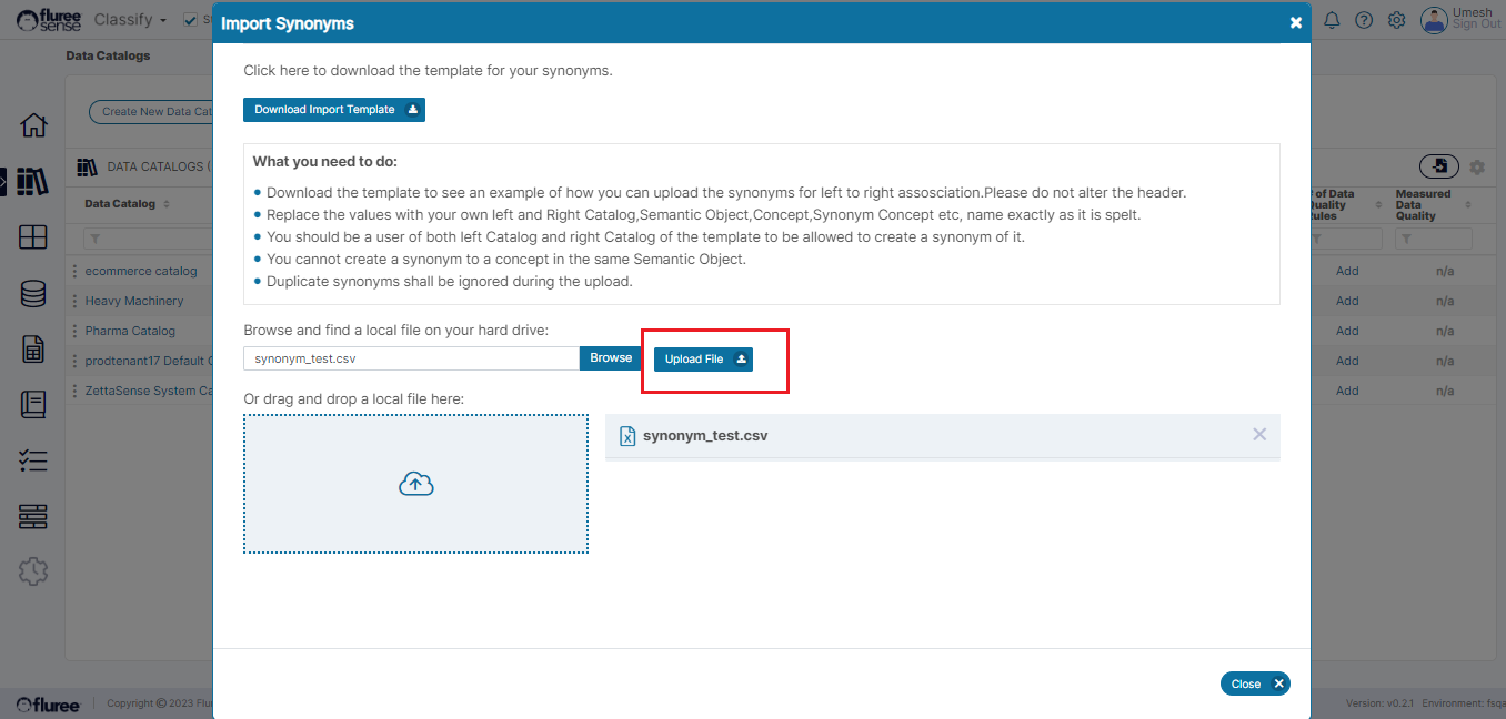 5. Duplicate Synonyms shall be ignored during the upload.