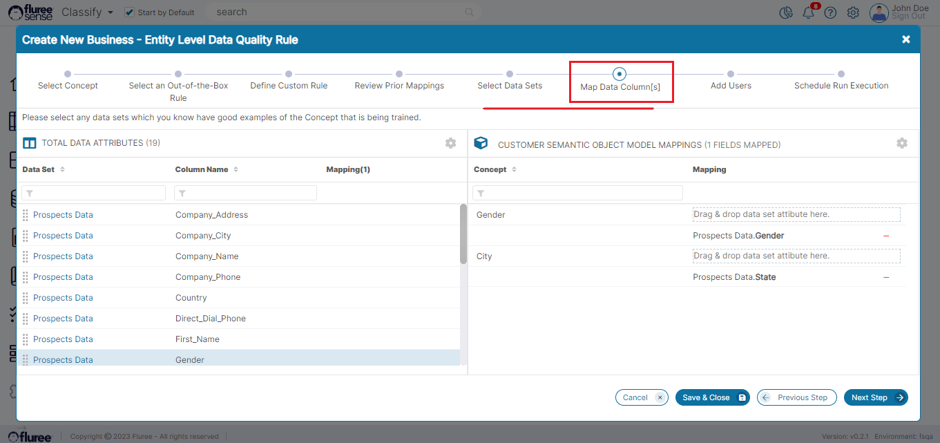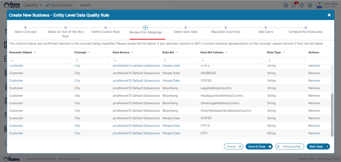 1. In the Business Rule Creation section there are screens in the workflow to ‘Review Prior Mappings’ and ‘Map Data Column(s).’ If you’ve gone through the Section on Training model at Concept level, you may recall seeing something similar there. So essentially, by adding / removing mappings just before running a rule, we provide new inputs for the Tenant-wide Classification process which will run as part of the Business rule.