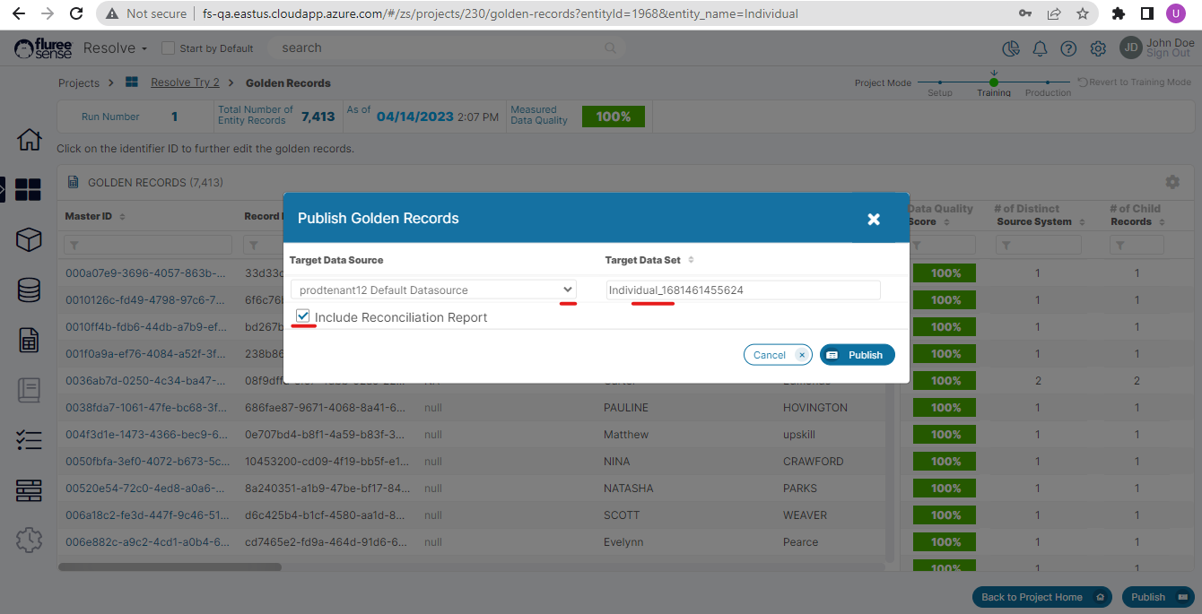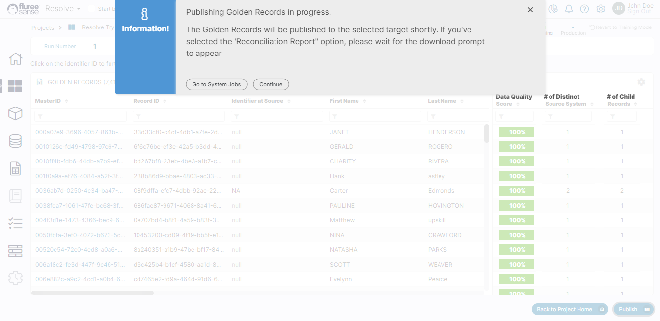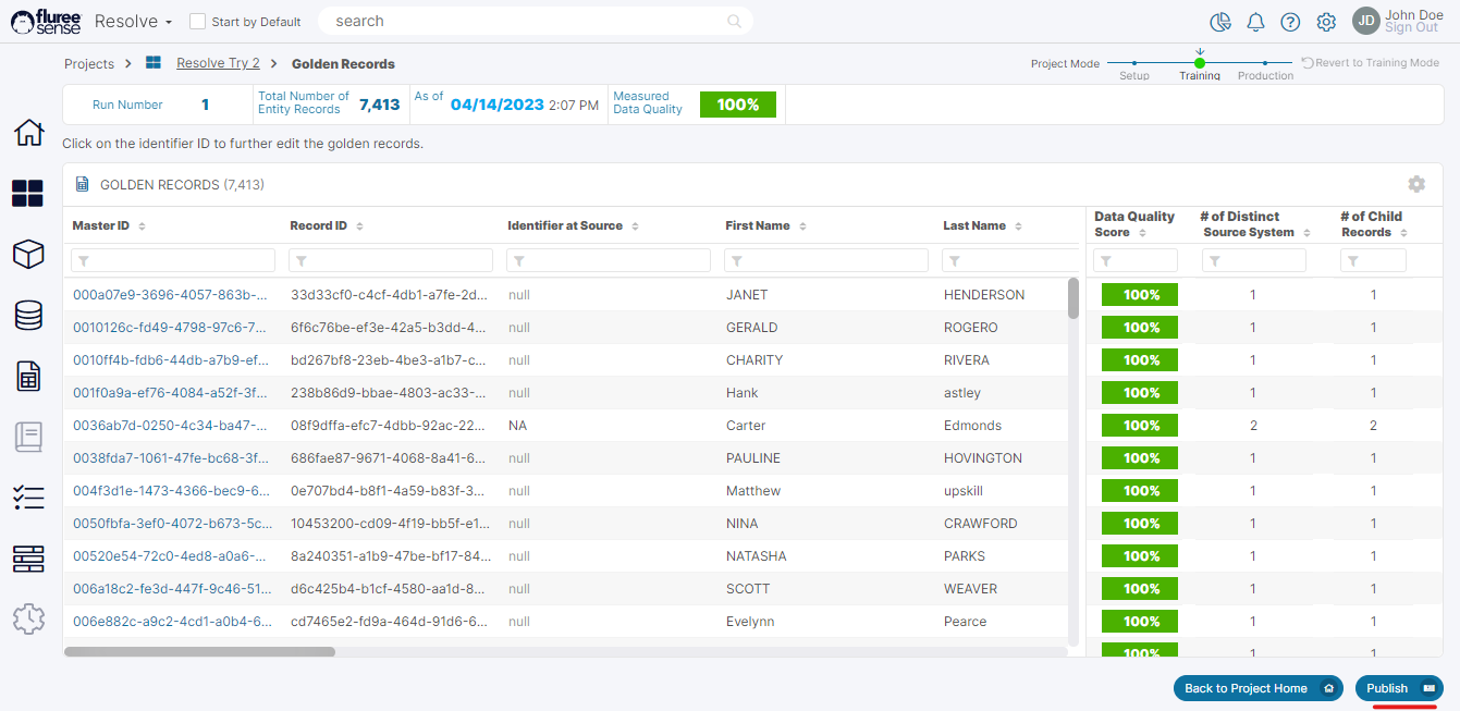 Once the Golden records are generated where you feel you have the requisite level of confidence and quality, you can go ahead and publish them. Golden Records can be published any time after the first run of the Project. There is no system threshold, confidence level, etc. for publishing and we’ve left it to the users to decide when they want to publish their Golden Records Dataset.